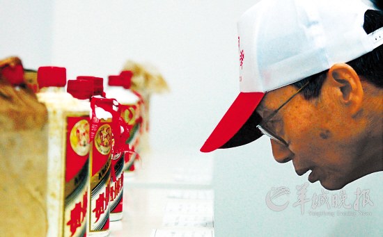 2011年9月25日,在江西首届陈年茅台酒拍卖会现场,参观者在仔细端详陈年茅台酒