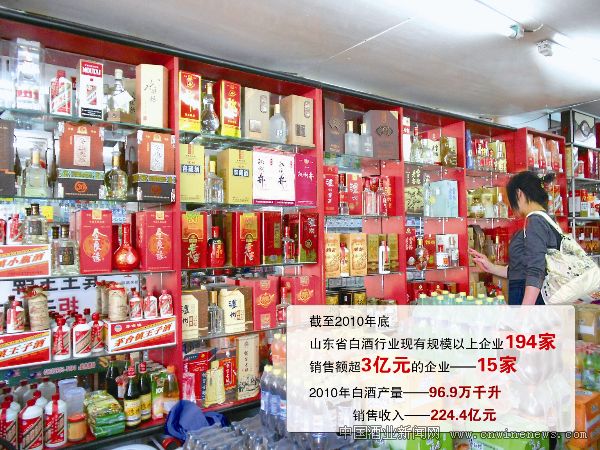在全国酒类市场中,山东的酒水市场和品牌比较有特色。山东是为数不多的白酒生产和消费大省,酒水企业和品牌众多,有的县酒厂甚至多达十几家。山东市场曾经是鲁酒独步天下的舞台,在过去的很多年里,虽然鲁酒在省外市场上的影响力和销售量没有大的起色,但是家门口市场还是固若金汤,大部分鲁酒企业小日子过得很滋润。