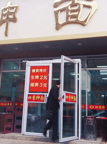 免费畅饮?2元一瓶?习惯了小饭店4元一瓶啤酒的消费者对这突如其来的优惠大为惊奇。快到夏日炎炎时,啤酒消费迎来旺季,低价啤酒在自助火锅烧烤店和24小时面条店的裹挟之下,冲击沈城啤酒市场。