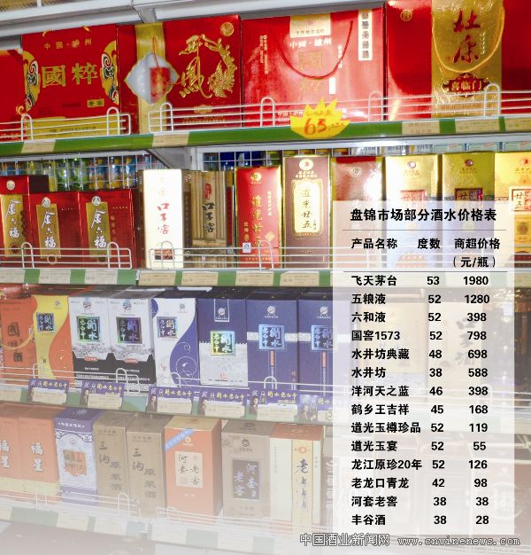茅台、五粮液稳占盘锦市高档白酒市场,多用于政商务接待用酒。200元/瓶—500元/瓶的中高档价位的白酒产品份额最小,以郎酒1912和洋河蓝色经典等为代表。100元左右的中低档白酒占据市场主导地位,鹤乡王、老村长、泸州老窖系列齐头并进,是亲朋聚饮和社交饮用的主流价位。30元以下的白酒产品以丰谷酒、河套老酒等领跑市场,是工薪阶层的首选,市场销量很大。