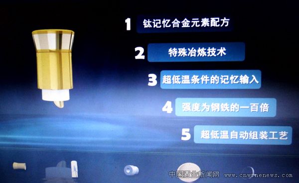 钛记忆合金玻璃酒瓶防伪装置采用医用人体内置级钛合金,在旋开酒瓶盖时记忆合金片被自动推入酒瓶中,记忆合金恢复形态记忆尺寸大于瓶口,无法取出。这时在瓶内留下一个永久的、一目了然的标记。金刚石陶瓷酒瓶防伪装置,采用机械结构和人造金刚石切刀,在旋开酒瓶盖时切刀会在瓶的表面切割深达0.5