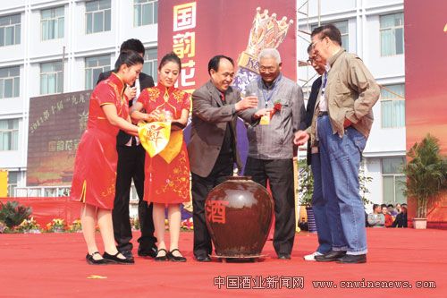 在2011第十届“九九”花冠储酒文化节上,山东省白酒协会副会长、花冠集团董事长刘法来与专家们共同为储酒开坛。