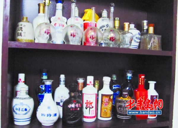 “卖废品别人也不爱要,我干脆就将这些瓶子摆在饭店橱柜内算了,还能当作装饰品。”在临沂路一家餐厅内,老板郑先生介绍说,饭店的白酒瓶子很难处理 ,他就干脆摆放在店内当装饰。记者看到尧王醇、赖茅、郎酒、泸州老窖等品牌白酒瓶都被摆放在饭店内。