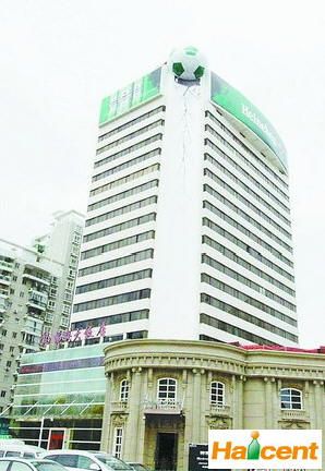 昨日下午,在厦门市湖滨南路与湖滨东路交叉路口的福联大厦顶端,一个巨型“足球”“镶嵌”在墙壁上。远看上去,墙壁似乎也已“裂开”,“足球”也摇摇欲坠。此景不禁引得路人驻足观看,却原来虚惊一场——这是一家啤酒厂商的专门策划。
