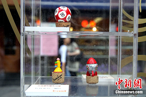 本地酒塞雕塑家David Yau的作品充满香港特色。中新社发洪少葵 摄