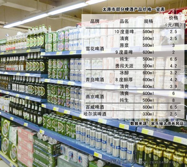啤酒销售旺季,大打促销战是厂商惯用的手段。与往年相比,今年各大啤酒品牌口味上花样百出,品牌间的竞争也更加激烈。“啤酒零售价,比一瓶矿泉水还便宜。”5月14日,笔者来到家乐福太原长风店,正在逛超市的消费者申女士说。