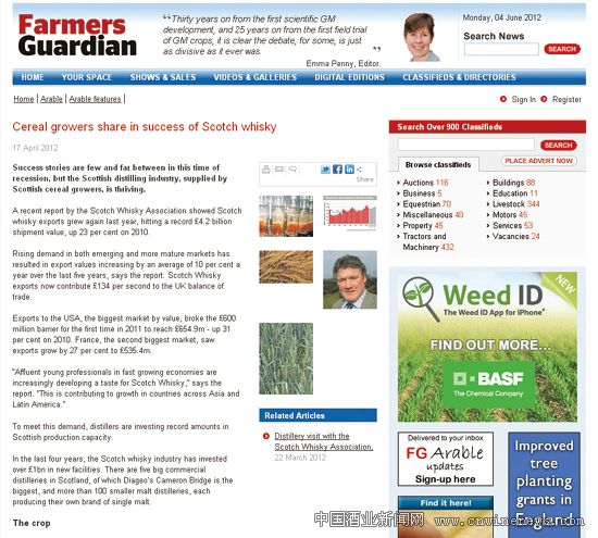 文章来源华夏酒报农业部门的数字,2011年苏格兰大麦产量为100万吨,其中3/4用作威士忌原料。