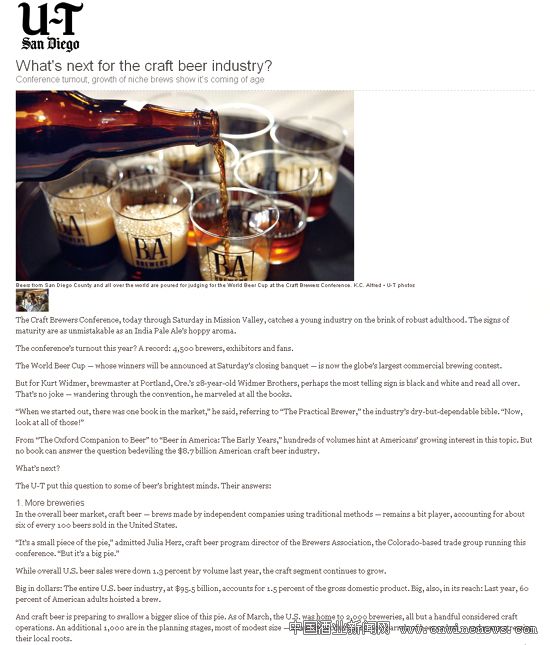 大会指出,随着市场需求的不断上升,美国精酿啤酒生产商数目将更多,产品数量也将不断增加,目前美国市场每售出100瓶啤酒中,就有6瓶是精酿啤酒。
