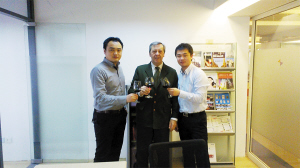 (图)销售经理 杨涛(左) 西班牙路易斯古佩奇姆卡家族酒庄庄主(贝赛欧集团)Primitivo Gurpegui(中) 范磊(右)