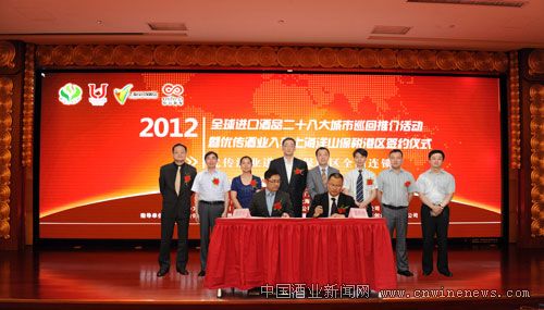 由中国食品土畜进口商会和厦门优传供应链有限公司共同举办的全球进口酒品28大城市巡回推介上海站活动暨优传酒业入驻上海洋山港签约仪式6月14日在上海半岛会所举行举行。