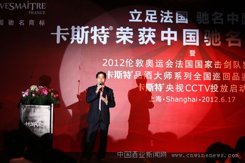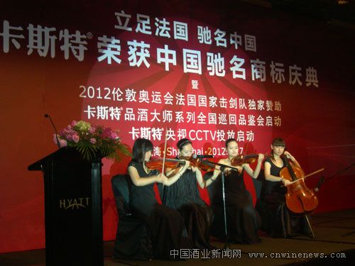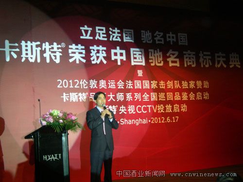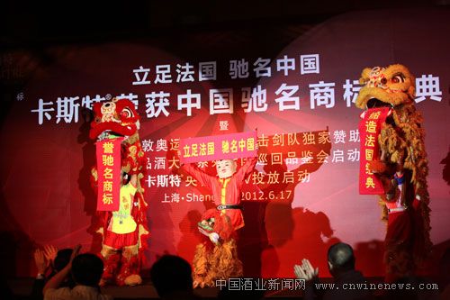 2012年6月17日,“卡斯特荣获中国驰名商标庆典”在上海金茂君悦酒店隆重举行,这是进口葡萄酒第一个荣获“中国驰名商标”的品牌。中国酒业协会理事长王延才、上海市酒类专卖局局长卢荣华以及上海市商委、上海市工商局、上海市虹口区领导等到会祝贺。