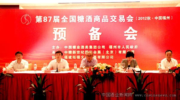 第87届全国糖酒商品交易会(2012秋·中国福州)预备会于6月5日在福州市召开。本届糖酒会由中国糖业酒类集团公司和福州市人民政府共同主办,中糖新世纪国际会展(北京)有限公司承办,福建拓福文化发展有限公司协办。