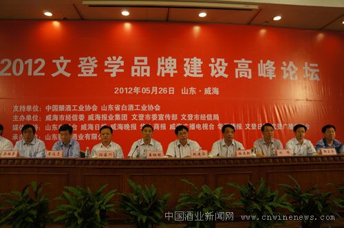 5月26日,由山东威海市经信委、威海报业集团、文登市委宣传部、文登市经信局主办,山东颐阳酒业有限公司承办的“2012文登学品牌建设高峰论坛”在威海举行。中国酿酒工业协会秘书长赵建华、山东省白酒工业协会秘书长姜祖模以及威海市委领导、颐阳酒业各地经销商代表等300余人参加了论坛。