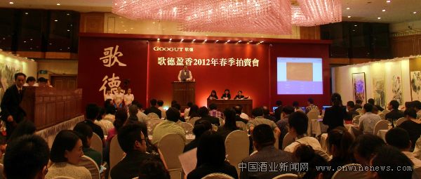 北京歌德盈香2012年春季拍卖会6月3日于昆仑饭店圆满落槌,本次拍卖是国内迄今为止规模最大,拍卖酒种最丰富,成交额最高的酒类专业拍卖会。本次拍卖会集中外名酒5大专场,总成交额逾1.8亿元。为期两天的拍卖会场面异常热烈、高潮迭起,成为今年春拍市场上一道独特的风景线,同时也再度开启了中外名酒在国内规模化及专业化拍卖的新篇。