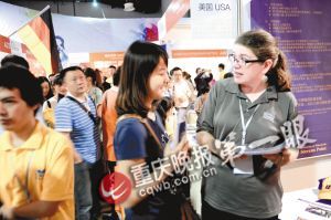 重庆晚报讯 昨天,第十一届中国(重庆)国际教育展在科技馆正式开幕,来自英国、美国、日本等14个国家的上百所海外院校和机构到场吆喝,以招揽重庆学生前往留学。