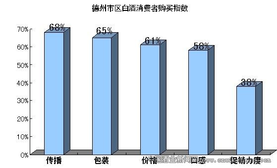1.中低档白酒消费趋向理性,首先会考虑品质。在中低档白酒市场的消费因素调研中,从口感、价格、传播、促销力度几个方面表现为: