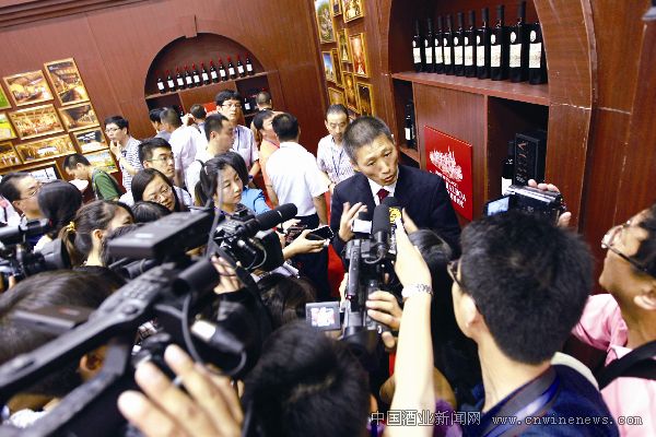 张裕公司总经理周洪江在接受中外媒体采访 本报记者 时立国 摄 转载此文章请注明文章来源《华夏酒报》。