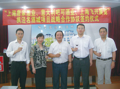 6月20日,上海席家酒业有限公司、意大利吧可酒庄有限公司、上海飞兴展览有限公司入驻上海枫泾名酒城签约仪式在名酒城举行,这标志着上海枫泾国际名酒城项目正式进入实际性启动阶段。