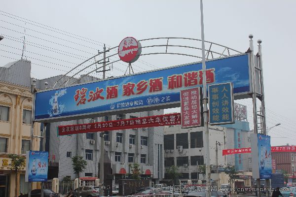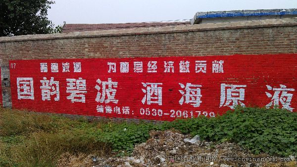 在从菏泽赶往曹县调查的路上,《华夏酒报》记者发现,沿路的商铺都标有“爱曹县、喝碧波”的字样。在曹县城区的主干道上,“碧波酒、家乡酒、和谐酒”的蓝色广告牌更是随处可见。