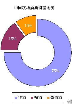 据一项市场调查数据显示,自2004年起,中国夜场酒类消费的比例发生了颠覆性的变化:洋酒达到75%,啤酒15%,葡萄酒10%。业内人士表示:这说明消费者的消费习惯正在发生变化,越来越多的人趋向于选择低酒精度和淡口味的酒。
