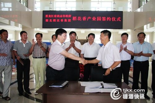 7月22日,稻花香集团副董事长、总经理蔡开云与黑龙江省尚志市委副书记、市长迟宝旭签订项目投资协议,稻花香集团投资3亿元建设黑龙江稻花香产业园,并以此为基地全面辐射东北市场。