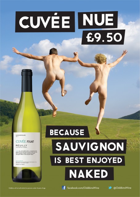 The launch will be supported by a poster campaign showing two joyfully naked people and a bottle of the wine in close-up.