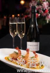 传统上,此款起泡酒适合搭配各类海鲜、白肉甚至是水果甜品。但与香料烹调,竟也呈现令人惊喜的味觉体验:用泰国虎虾制作成金丝虾配泰式卷心菜,带有蕃茄酸辣酱和香辣橙味蛋黄酱, 配合此款起泡酒中的清新柑橘类果香自然是第一重的和谐;而酒体中奶油般的坚果风味和柔和的后调消除了菜肴中微辣的冲击,将虎虾独特的鲜甜温柔包裹, 跳跃而细腻的口感,精致的起泡和清爽的收尾,搭配出爽口的感受。