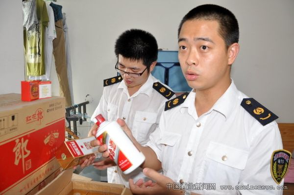 执法人员也现场对茅台酒的真伪进行初步鉴定。“这个酒瓶看来是真的,但里面的酒究竟有没有问题,我们会将这些茅台酒送回厂家进行鉴定。”