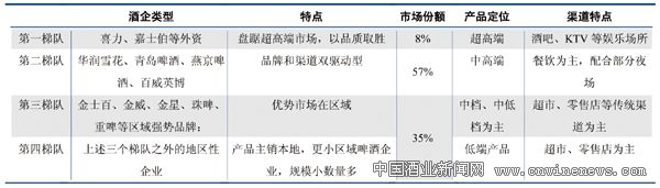 图表11 啤酒业简单划分为四个梯队