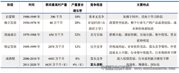 图表10 我国啤酒行业发展各阶段特点
