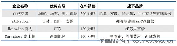 图表12 主要外资啤酒企业在华布局