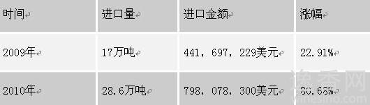 图表:2009-2010年中国葡萄酒进口状况