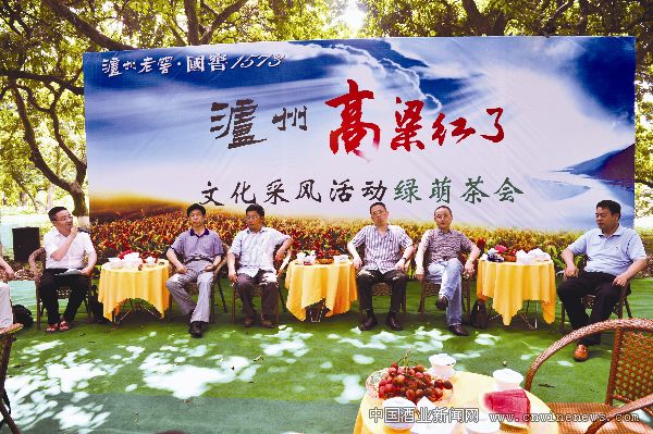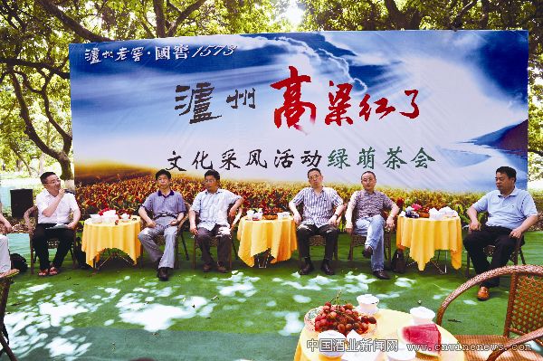 泸州老窖领导与文化名家在泸州桂妃园举行绿荫茶会。