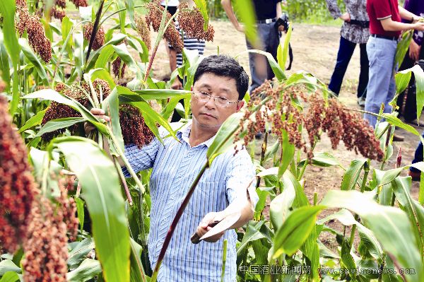 四川省作协主席阿来在金坛有机高粱种植区收割高粱。 转载此文章请注明文章来源《华夏酒报》。