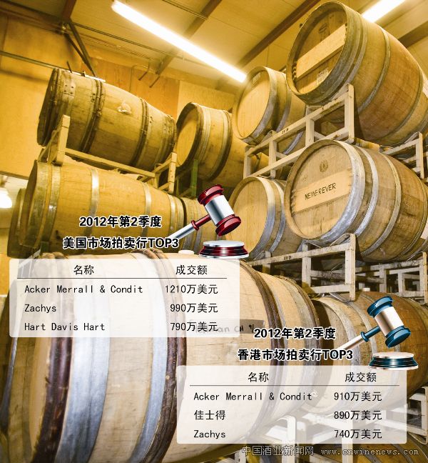 受波尔多顶级佳酿价格下跌以及经济下滑影响投资者信心等因素的影响,上半年全球前五大拍卖行的葡萄酒拍卖成交额下跌1/4,至1.6亿美元。预计2012年全年佳酿拍卖额将低于2011年创下的4.05亿美元最高纪录。