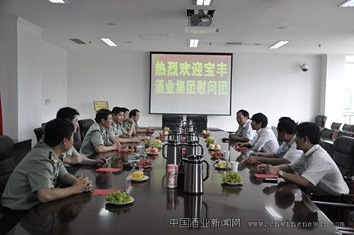 7月27文章来源华夏酒报日、7月30日,河南宝丰酒业营销公司董事长王若飞、总经理南永红、品牌总监晋育峰、副总经理季顺涛分别慰问了河南省军区、武警河南总队等六家驻豫部队,并举行了军民座谈会。