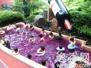 洗葡萄酒浴可以营养皮肤,强身健体。最先想出葡萄酒浴的人是马蒂尔德·托马斯女士,她听法国波尔大学的科学家说,葡萄籽富含一种营养物质“多酚”,长期以来,人们一直相信维生素E和维生素C是抗衰老最有效的两种物质,可是葡萄籽中含有的多酚这种特殊的物质,其抗衰老的能力是维生素E的50倍,是维生素C的25倍。马蒂尔德和她的丈夫波特兰德开设了一个加工厂,产品包括皮肤清洁剂、沐浴液、护肤霜、生理调节剂(口服)和抗皱美容霜,目前,马蒂尔德除了生产美容护肤品外还提供系列特色浴,主要包括下列几种:红葡萄酒浴、葡萄蜂蜜浴、墨尔乐浴、桶浴,以上这些都是“湿疗”,还有“干疗”,就是用葡萄籽榨的油、波尔多产的蜂蜜和天然植物精华搀和在一起,涂在身上和脸上,由皮肤美容专家进行两个多小时的按摩,有病治病,无病美容健身。这种“三合一”的产品能够疏通脉络、扩张血管及滋润皮肤,预防和消除雀斑和黄褐斑等,而且还能增强皮肤的抗病能力。