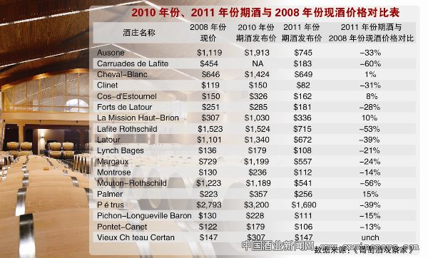 美国纽约著名葡萄酒商店Sherry Lehmann执行总裁Chris Adams说:“我对2011年份期酒的定价感到吃惊,虽然有一些酒定价还算合理,但大多数价格太