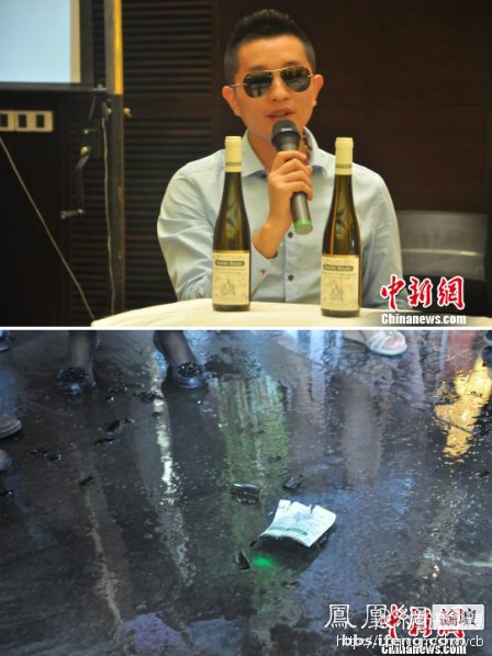 前两天,一名据说是高富帅的小伙,花了20万元拍得了两瓶白葡萄酒,但将其中一瓶当场砸碎,声称这么做是为了支持国货。
