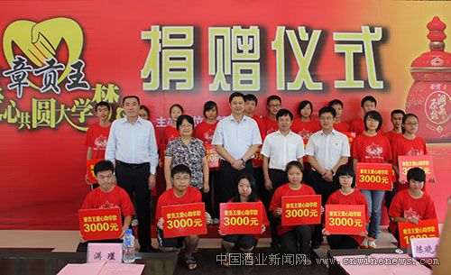 8月24日,2012年“章贡文章来源华夏酒报王爱心共圆大学梦”捐赠仪式在江西章贡酒业有限责任公司举行。赣州市委常委、副市长陈晓春,市政协副主席满瑾,市委副巡视员、市委教育工委书记李恭进,共青团赣州市委书记邱凌,江西章贡酒业有限责任公司总经理杨立志,以及章贡酒业高管团队成员出席捐赠仪式,并向受资助学生现场发放助学金。