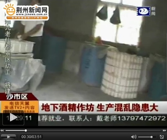 除了这家地下作坊外,记者还先后在沙市区立新乡洪垸村六组、塔桥北路等地方,发现了另外三家固体酒精作坊,由于这几处都大门紧闭,记者没能进入,不过从门窗缝隙中,仍然可以看见多个酒精桶存放在院内。这几处作坊也都紧挨着居民区,存在着不小的安全隐患。