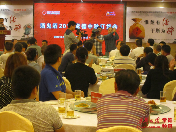 惟楚有酒 于斯为醉9月17日上午,由酒鬼酒湖南销售有限责任公司主办的“酒鬼酒2012常德中秋订货会盛大举行”在常德华大大酒店国际会议厅隆重举行,300余位市县级经销商客户代表参加了此次盛会。