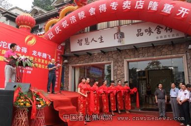 随后,余成海、田志勇、文章来源中国酒业新闻网夏祥文等7人共同为舍得酒涪陵专卖店开张庆典剪彩。涪陵著名书法家、中国“兰亭奖”获得者胡永庆等为舍得酒专卖店现场赠送了以“舍得”为主题的书法作品。