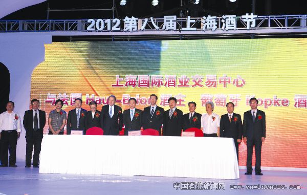 上海市委常委、副市长艾宝俊,国家商务部内贸专家委员会主任黄海,上海市人大常委会副主任胡延照,中国酒业协会理事长王延才,中国酒类流通协会副会长兼秘书长刘员等出席开幕式并共同为上海国际酒类现代商贸服务功能区揭牌。开幕式上,还举行了上海国际酒业交易中心与法国侯伯王酒庄、葡萄牙科普克酒庄上市发行签约仪式。