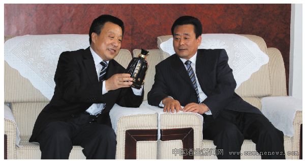 泰山酒业董事长马西元(右)与总经理张铭新(左)研究工作。