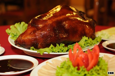 Before picking a wine to go with Peking duck, consider the flavor of the sauce. Peking duck: Pinot noir from Burgundy to match a mild plum sauce. For a very sweet sauce, a pinot noir from New Zealand would pair better.