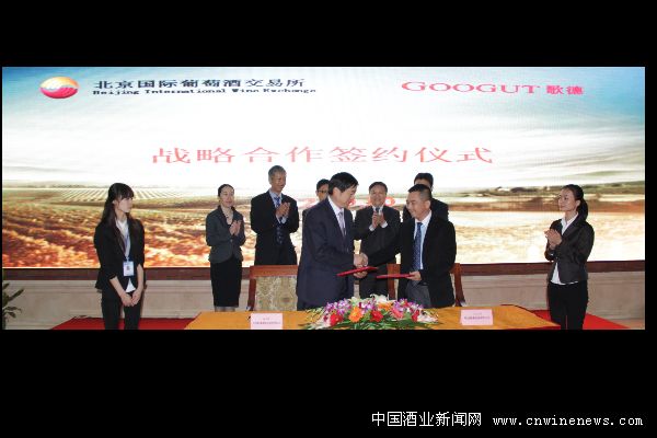2012年10月20日下午,中国最具实力的葡萄酒交易所——北京国际葡萄酒交易所与中国最具规模的专业酒类拍卖公司——北京歌德盈香拍卖有限公司在北京国际葡萄酒交易所交易大厅签署了战略合作协议,拉开了二者在高端酒品交易及拍卖等方面合作的序幕。之后于当天下午联合举办了中外投资级酒品推介会暨品鉴会,向在场的100多位嘉宾展示了将于11月17日举办的 “遗世佳酿 尊享醇芳”—2012金秋中外名酒专场拍卖会上拍卖的逾百款中外珍稀酒品。无论是二者新颖的合作方式,还是酒类收藏投资市场上难得一见的酒品本身,均引起了在场嘉宾及媒体记者的极大兴趣。