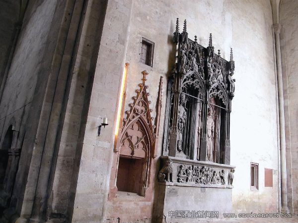 在位于威斯巴登和吕德斯海姆之间的埃特维尔(Eltville)小镇,静静流淌着一条小溪,埃伯巴赫修道院(Kloster Eberbach)就座落在小溪旁边的山坡上。在午后阳光的照耀下,这栋中世纪的建筑显现出远离尘嚣、超凡洒脱的气质,很有点世外桃源的感觉。这里堪称“莱茵高葡萄酒的摇篮”,没有哪座建筑能像这座修道院