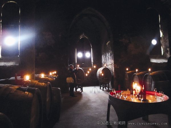 最后采访团来到阴暗的地下酒窖内,葡萄酒浓重的酸味,混合着地下室惯有的湿气、空气中的朽木之气以及墙壁上厚厚的霉菌带来的味道扑鼻而来,错落排列着的是几十个陈旧的葡萄酒桶。酒窖中存有3万瓶葡萄酒,最古老的年份为1706年。