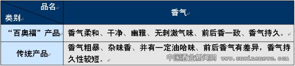(2)方法:每个样品由四名品评人员分三次品评,在20℃的品评环境下进行,评价“百奥福”系列产品与传统产品香和味的差异。(具体联系方式详见本报“酒类信息及配套专版”)